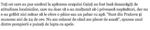 de unde aveau oamenii sa stie ca militarii ce munceau pentru dig nu aveau apa sau mancare… in conditiile in care sinistratii au primit apa si mancare de la militari!, cu remorcile armatei, bai nene!