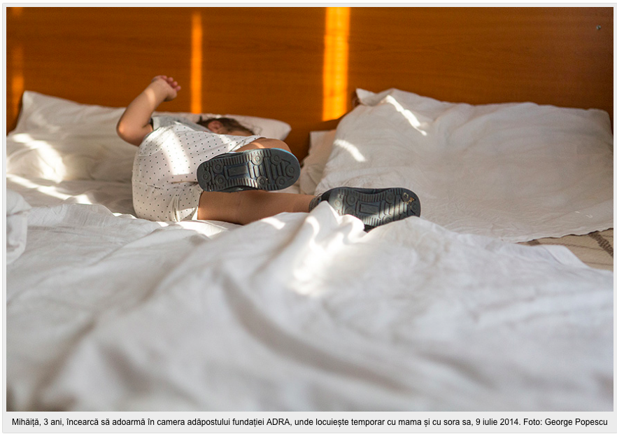 Prin bluza albă, puțin transparentă, Vicăi i se vede buletinul ascuns între sâni. Face curățenie în blocuri, uneori și în apartamente, și e unul dintre cetățenii aceia rari care vorbește frumos de interacțiunile cu funcționarii publici. Își amintește cum a aflat de protecție. S-a dus într-o zi la Autoritatea Națională pentru Protecția Drepturilor Copilului și Adopție. “Le-am zis ca am auzit că s-a dat niște legi în privința mamelor cu violența în familie”, spune. După care a făcut “o cerere la doamna directoare, «vă rog frumos să mă credeți, sunt o mamă disperată»”, după care i-a povestit cum s-au petrecut lucrurile. Vorbește rar, cu pauze lungi între cuvinte. “Am lăsat numărul de telefon și a treia zi m-a și sunat”.