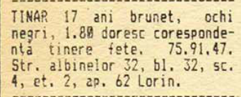 Simona,citind anunturile din ziarul vechi am remarcat cateva care nu sunt selectate de tine si e mare pacat: