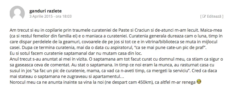 Vine Paștele, e unul dintre acele momente din an în care se face curățenia generală. Așa că vă servesc cu câteva povești amuzante la temă, adunate de prin comentariile cititorilor:
