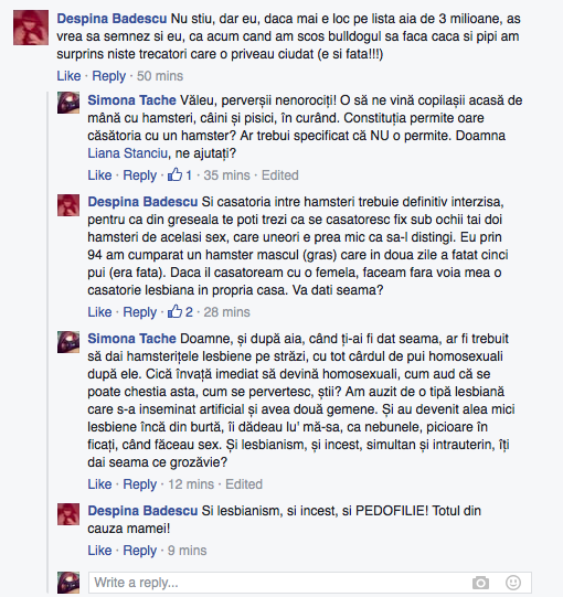 M-ati innebunit cu lista asta de semnaturi! Am inceput sa privesc cu alti ochi ce se intampla in jurul meu si e straniu cum nu am sesizat pina acum. Uite, alaltaieri in fata blocului doi vecini discutau fata in fata si iata ce am auzit: – Bai, daca te mai prind ca parchezi rabla ta de masina pe locul meu de parcare…te-am futut de-ti sar ochii din cap!!!! Ceee??? Nu pot sa creeed! Si puteam sa jur ca amandoi sunt hetero, au copiii colegi de clasa, dar dupa asta zi si tu cum sunt! N-ai cu cine frate, niste LeGeBeT-isti!