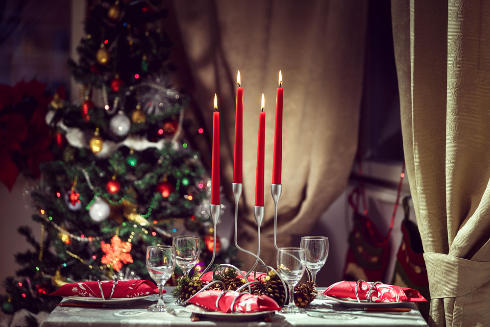 În foto, masa perfectă de Crăciun, decorată cu sfeșnice. Altfel vor aluneca sarmalele la lumina lor. Merg la fix, lângă sfeșnice, și niște inele spiralate pentru șervețele, tot primite cadou.
