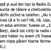 Emi, cititor al blogului roz, mi-a semnalat un paragraf din Dilema veche: Deci, cum ar veni, după ce au şmanglit glume de unde-au văzut cu ochii şi au relatat, la persoana I, tone de întâmplări pe care le trăiseră şi le povestiseră alţii, în scris, băieţii glumeţi de la Radio Zu şi-au băgat mâinile până […]