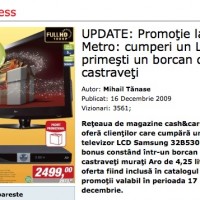 Sandman a descoperit această promoţie: Eu am primit vestea cu oarecare emoţie. Mi se pare o promoţie înduioşătoare. Nu-ţi vine să râzi când o afli, doar să zâmbeşti tandru, cu înţelegere. Aproape că-ţi vine să şi cumperi un LCD, dar nu fiindcă ţi-ar trebui aşa ceva (mai ai vreo şase), ci fiindcă vrei castraveţii. Se […]
